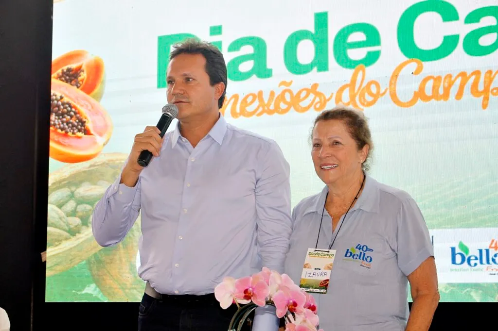 A Fazenda Chão Bello, em Ibirapuã, recebeu na última terça-feira (16) o evento “Dia de Campo – Conexões do Campo à Mesa”, que marcou as comemorações dos 40 anos da Bello Fruit. A iniciativa reuniu cerca de 1.600 pessoas, entre autoridades, produtores rurais, empreendedores e consumidores, consolidando-se como um dos maiores encontros do setor agropecuário da região. O evento foi realizado em parceria com o Sebrae em Teixeira de Freitas e o Consórcio Construir.